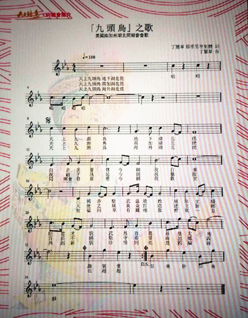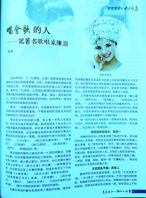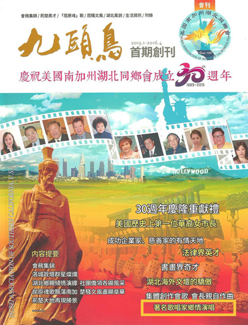 这首《“九头鸟”之歌》是美国南加州湖北同乡会为创刊《九头鸟》杂志和庆祝湖北同乡会成立30周年而创作的会歌。曾在美国演出的湖北籍歌手陈涓,用《黄四姐》等一组男女声反串民歌,引起美国华人热情洋溢的赞扬,更是引起湖北同乡会的热棒,并邀请陈涓一人双唱,演唱了这首《“九头鸟”之歌》。